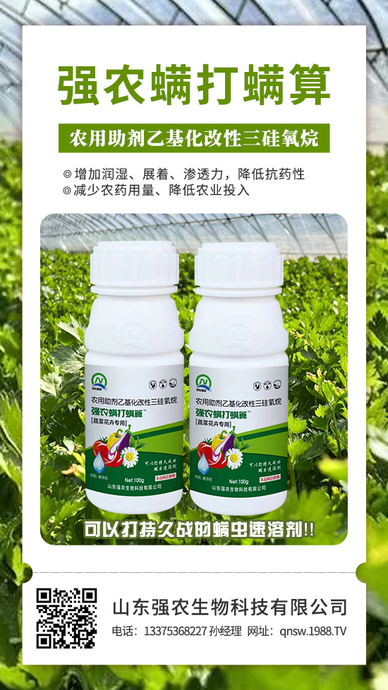 強(qiáng)農(nóng)螨打螨算是山東強(qiáng)農(nóng)生物科技有限公司與華中農(nóng)業(yè)大學(xué)有機(jī)溶劑研究院經(jīng)過多年努力螯合萃取而得的新型溶解劑。又通過高新納米技術(shù)添加了高滲透溶解液,使本品對以柑橘、瓜果蔬菜為主的各種紅蜘蛛、二斑葉螨、茶黃螨等螨類成蟲及蟲卵噴施后快速穿透害蟲表皮蠟質(zhì)層、油脂層和磷脂層使其快速脫水干枯而死,使用本品藥效。