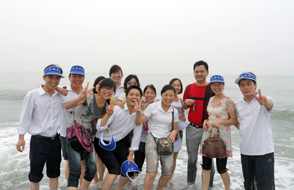 火爆網(wǎng)絡全體員工在燈塔前的合影留念