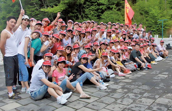 火爆網(wǎng)絡全體員工在白云山山腳下合影留念