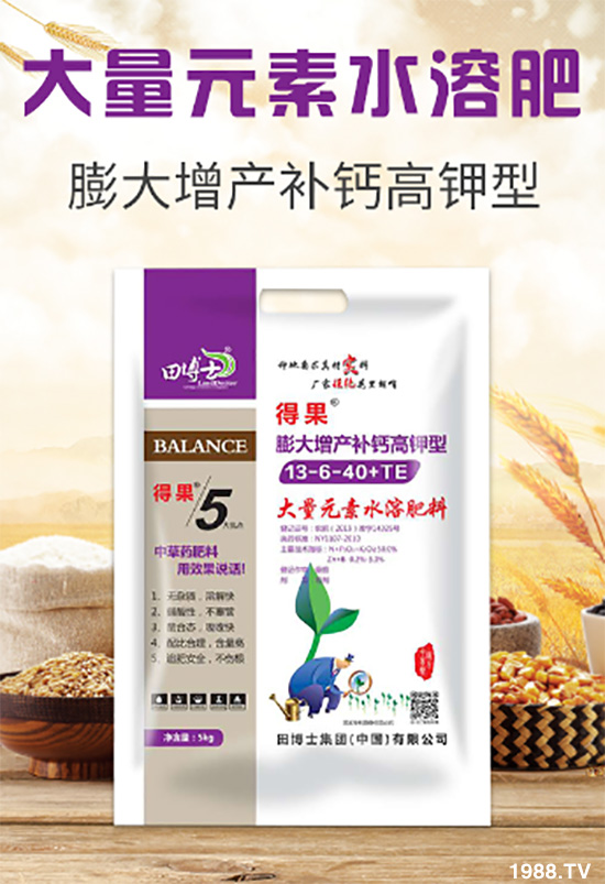 田博士集團(tuán)有限公司【膨大增產(chǎn)補(bǔ)鈣高鉀型大量元素水溶肥料13-6-40+TE-得果】優(yōu)勢