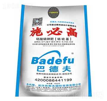 當(dāng)前位置:首頁 >> 武漢巴斯夫國際貿(mào)易有限公司 >> 硝硫基全水溶肥料20-20-20-施比高-巴斯夫