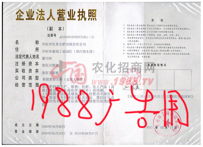 開封開化復合肥有限責任公司自成立以來,經(jīng)過近十五年的發(fā)展,現(xiàn)已成為集生產各種高、中、低濃度復合肥、BB肥、有機肥、有機-無機肥,物流,貿易等于一體的綜合型企業(yè)。年產各種含量復合肥、混配肥、有機肥、有機-無機肥達30萬噸。并榮獲“河南省商標”、“河南省創(chuàng)業(yè)杯產品”、“開封市優(yōu)質產品”、被省農業(yè)廳確定為“河南省測土配方施肥定點生產企業(yè)”、“河南省免檢產品”、2004年再次被河南省技術監(jiān)督局授予“質量之星企業(yè)”稱號。開封市工商行政管理局認定我公司為“2011年度重合同守信用企業(yè)”(汴工商[2012]47號);我公司現(xiàn)為“河南省肥料協(xié)會第二屆理事單位”.