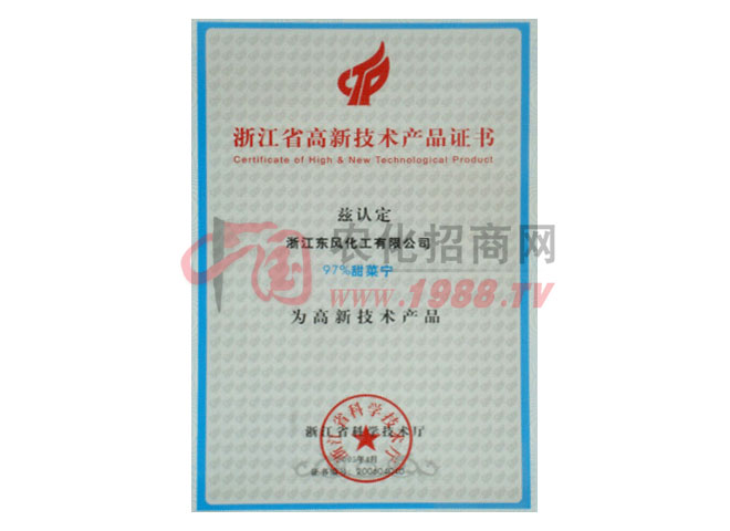 浙江東風(fēng)化工有限公司,創(chuàng)辦于1992年,是國(guó)家定點(diǎn)農(nóng)藥企業(yè),座落在溫州機(jī)場(chǎng)附近,公司占地面積50000多平方米,員工200多人,固定資產(chǎn)6600萬(wàn)元。經(jīng)過(guò)十幾年的艱苦創(chuàng)業(yè),現(xiàn)已逐步發(fā)展成為集農(nóng)藥研制開(kāi)發(fā)、生產(chǎn)、銷(xiāo)售和服務(wù)為一體化的現(xiàn)代化農(nóng)藥化工基地。公司曾連膺“浙江省高新技術(shù)企業(yè)”、“溫州市商標(biāo)”、“龍灣區(qū)百?gòu)?qiáng)企業(yè)”、“AAA級(jí)資信企業(yè)”、“重合同守信用企業(yè)”,擁有“外貿(mào)自營(yíng)進(jìn)出口權(quán)”、通過(guò)ISO9001:2000國(guó)際質(zhì)量體系和國(guó)家二級(jí)質(zhì)檢認(rèn)證,并擁有一個(gè)“農(nóng)藥科技研發(fā)中心”奠定了企業(yè)發(fā)展的堅(jiān)實(shí)基礎(chǔ)。